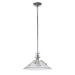 The Henry Medium Pendant with Glass Shade is part of the very popular Henry Collection offering both indoor and outdoor fixtures. A thick conical clear glass shade is held by steel arms with the Henry's hallmark rivets. Available in all standard finishes.