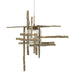 This Tura Mini Pendant is composed of perpendicular, intersecting handcrafted annealed aluminum pieces that form an exoskeleton that surround a thick, clear double layer of seeded glass. Suspended from a discrete round canopy, electricity is delivered via the pendant's low voltage cable. Available in all standard finishes.