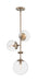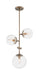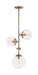 Sky is a modern pendant that is visually stimulating. The asymmetrical design of the Sky three-light pendant and the clear glass orbs that enclose the bulbs creates the feeling of floating illuminated bubbles. The warm tones of the Burnished Brass soften the modern design. The Sky three-light pendant is 14.875 inches wide by 22.375 inches making it perfect as a single light source or can be grouped in multiples in a linear application.