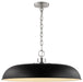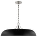 Designed with neutral, clean lines, the Colony large hanging pendant is ideal for an eat-in kitchen, dining room, and even a bedroom. The loft-style shallow pan metal shade is done in matte black, with a white interior to reflect the downfacing lamp. The polished nickel finish on the base, chain, and canopy adds an elegant touch to this flexible design.