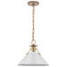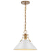 Open, airy, and full of charm, the Outpost medium pendant features a unique style all its own. The cone shade is suspended with slim rods, showcasing the exposed decorative burnished brass socket and a slight peek of the vintage bulb. The matte white finish on the metal shade is the perfect companion to the burnished brass finish on the base, chain, and canopy. The applications are boundless with the ability to illuminate a variety of areas in your home.