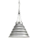 Rows of lapping wave-like metal are combined with beautifully braided cords and suspension hooks for an ageless "industrial meets the modern minded" point of view. The inspired pendant is offered in a Galvanized finish. This family of fixtures is part of Jeffrey Alan Marks lighting collection which celebrates a curated mix of yesterday and today, distilling both industrial and artisanal influences.