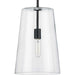 Who says you have to sacrifice forms for function? This versatile pendant features a simple, clear glass shade that embraces minimalist modernity and functional task lighting. The glass shade rests at the end of a sleek black bar that attaches to the ceiling. Each light fixture has a swivel at its base that makes it perfect for installing on flat or angled ceilings.