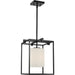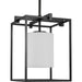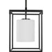Stick with simple geometric forms and clean crisp lines with this modern mini-pendant. A beautiful opal glass shade visually calms the sharp edges of the boxy frame in a masterful stroke of design excellence. The frame is coated in a classic black finish that contrasts the light shade. The light fixture is just right for spaces in need of a subtle, feminine touch.