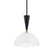 A dome-shaped shade is paired with a slender, conical neck creating a vintage-inspired silhouette that has a minimalist, modern appeal. The clear glass shade is etched on the inside and fills with a soft, gorgeous glow when lit. Pops of Patina Brass contrast beautifully with the Soft Black finish. The wall sconce can be mounted to provide uplight or downlight.