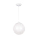 The Leo - Hanging Globe one light indoor pendant in white enhances the beauty of your home with ample light and style to match today's trends. While hanging globes are one of lighting's hottest trends, Sea Gull's timeless Leo Collection has been around for 50 years! Constantly evolving with the times, these classic pendants are now offered with NEW Clear Seeded glass and in Satin Aluminum finish. Adjustable cloth cords allow for unlimited variations of hanging heights. All glass softly diffuse the light, each fixture comes with 54” of cuttable cord to customize the installation exactly to your needs. Easily convert every piece in the collection to LED by purchasing LED replacement lamps sold separately. All fixtures are qualified and California Title 24 compliant and damp rated for use in sheltered, damp environments like bathrooms, covered patios or porches.