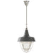 Henry Industrial Hanging Light in Polished Nickel and Green Shade with Industrial Prismatic Glass