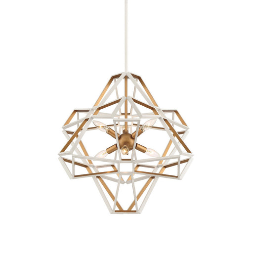 6-Light Geometric Sputnik Chandelier with Unique Satin White Exterior with Gold Interior Metal Finished Shade.Details:Product Type: Open FrameFinis...