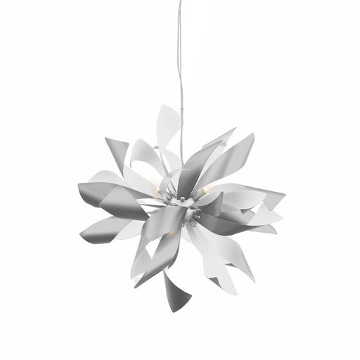 9-Light Decorative Floral Windmill Styled Silver Chandelier.Details:Product Type: StarburstFinish: Silver w/Matte WhiteMeasurements:Width / Dia: 24...