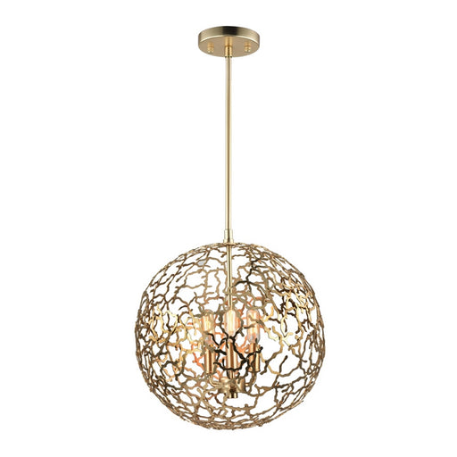 3-Light 14" Globe Pendant with Organic Metal Patterned Round Shade and Matte Gold Finish.Details:Product Type: SphereFinish: Matte GoldMeasurements...