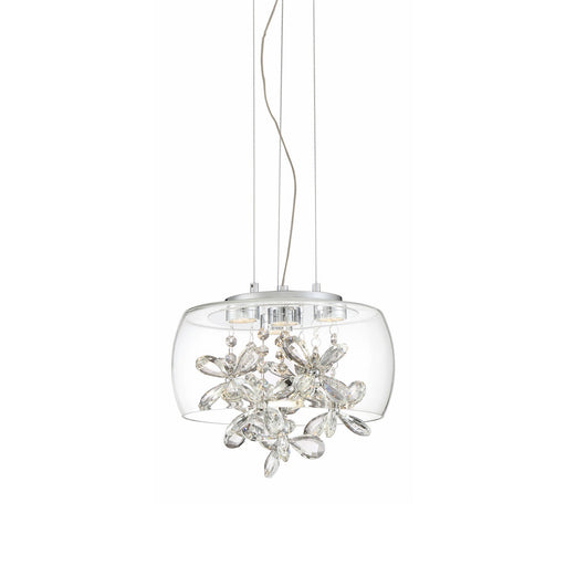 1-Light 13" Floral Globe Acrylic Pendant with White Rippled Shade and Polished Chrome Metal Finish.Details:Product Type: SphereFinish: ChromeMeasur...