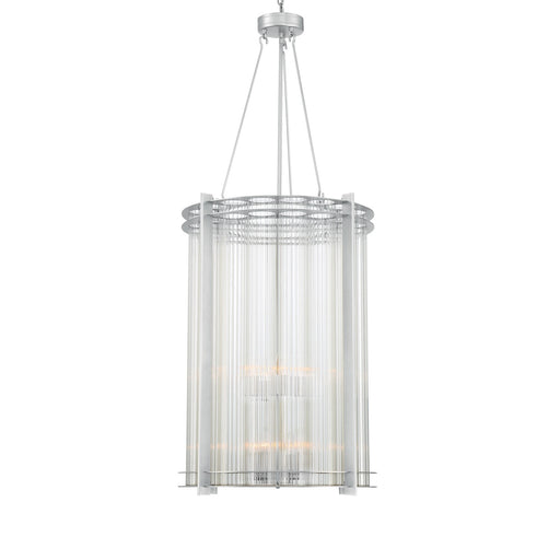 12-Light 24" Foyer Chandelier with Clear Fluted Cylindrical Glass within Polished Nickel Finished Metal Frame.Details:Product Type: Drum ShadeFinis...