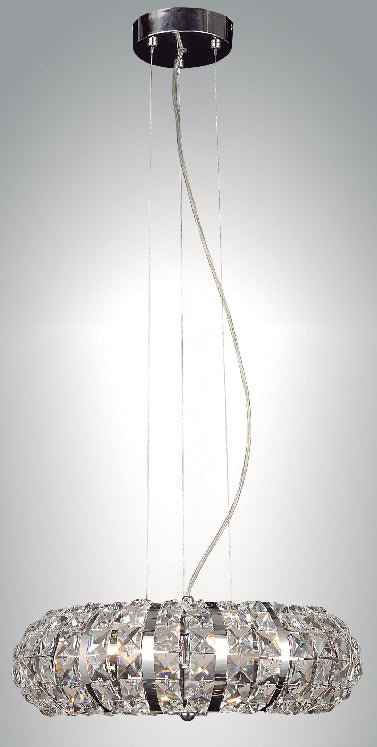 6-Light 15" Round Crystal Pendant LightDetails:Product Type: Glass DownFinish: ChromeMeasurements:Width / Dia: 15.25"Height: 66.40"Wire: 120"Canopy...