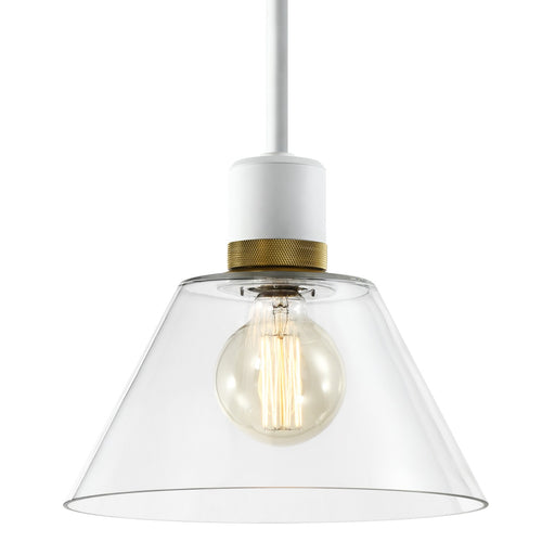 12" High End Clear Glass Cone Shade Pendant Light in Our Chic Matte White Finish with Detailed Aged Brass Diamond Knurled Metal Band. E26 Medium Ba...