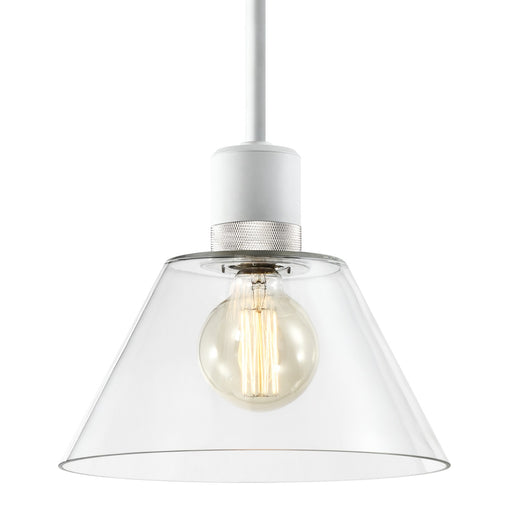 12" High End Clear Glass Cone Shade Pendant Light in Our Chic Matte White Finish with Detailed Polished Nickel Diamond Knurled Metal Band. Integrat...