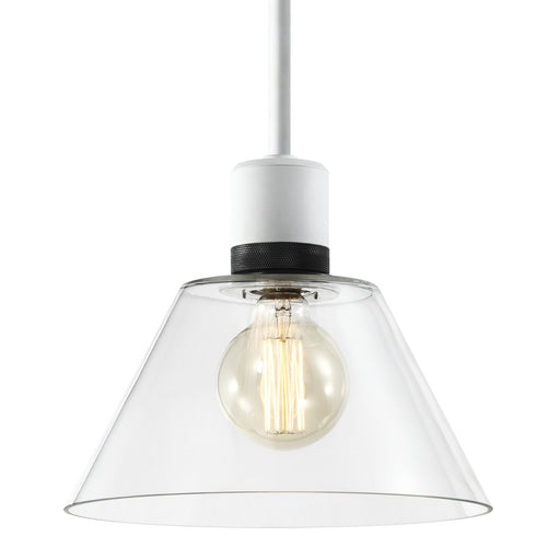 12" High End Clear Glass Cone Shade Pendant Light in Our Chic Matte White Finish with Detailed Satin Brushed Black Diamond Knurled Metal Band. E26 ...
