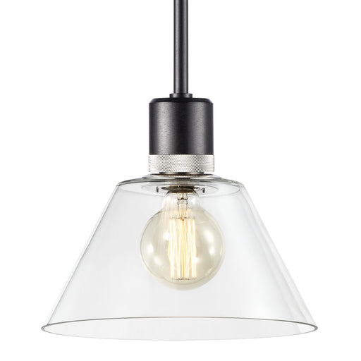 12" High End Clear Glass Cone Shade Pendant Light in Our Luxurious Polished Nickel Finish with Detailed Satin Brushed Black Diamond Knurled Metal B...