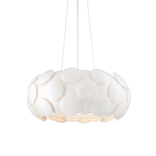 6-Light 20" Designer Pendant with Mini Semi-Dome Gloss White Discs Creating Oblong Shade with Frosted Diffuser.Details:Product Type: Metal ShadeFin...