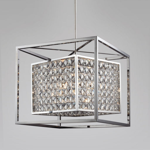 6-Light 20" Geometric Crystal Chandelier with Combined Clear Faceted Square Crystal Inner Shade and Stainless Steel Finished Frame.Details:Product ...