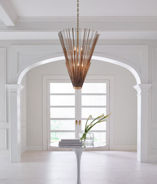 Named after the Greek God of the Sun, the Alexa Hampton Helios eight light indoor pendant in Antique Gild is made with hand applied gold leaf and t...