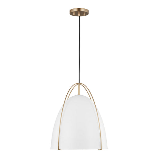 View full detailsVisual Comfort Studio AEP1031BBSMWT One Light Pendant, Matte White and Burnished Brass