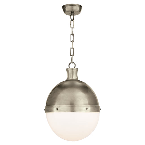Hicks Large Pendant in Antique Nickel with White GlassDetails:Product Type: Metal ShadeFinish: Antique NickelShade: White GlassDesigner: Thomas O'B...