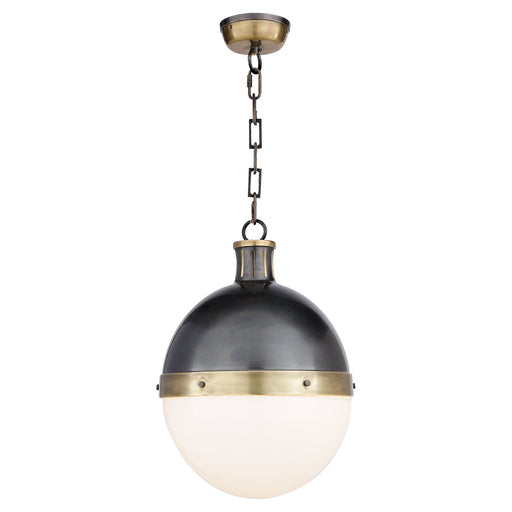 Hicks Extra Large Pendant in Bronze and Hand-Rubbed Antique Brass with White GlassDetails:Product Type: SphereFinish: Bronze with Antique BrassShad...