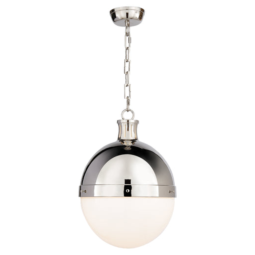 Hicks Large Pendant in Polished Nickel with White GlassDetails:Product Type: Metal ShadeFinish: Polished NickelShade: White GlassDesigner: Thomas O...