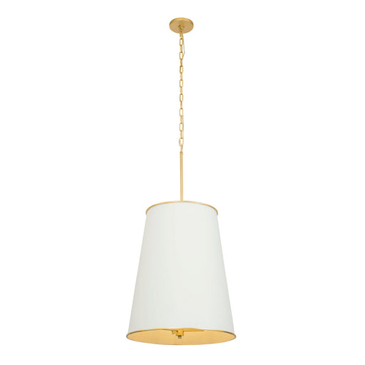 View full detailsVaraluz 368P04GOW Four Light Pendant, Painted Gold/White Leather