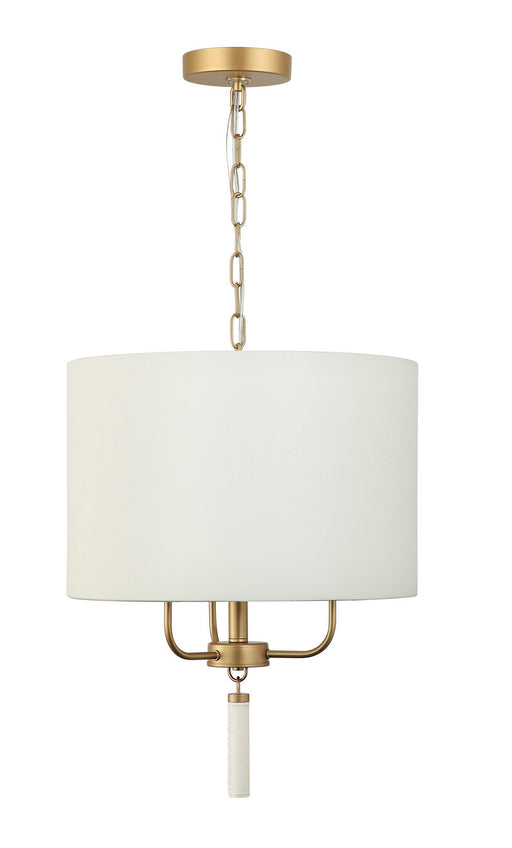 View full detailsVaraluz 368P03GOW Three Light Pendant, Painted Gold/White Leather