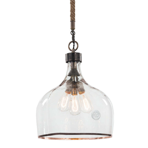 A glass demijohn bottle hangs from twisted jute rope to illuminate & add refreshing character over an island, sink, or dining table. Thoughtful...