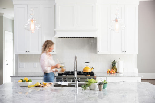 Selma pendant lights feature a large, clear water glass shade and your choice of brushed nickel or matte black finish. The sleek, minimalist silhou...