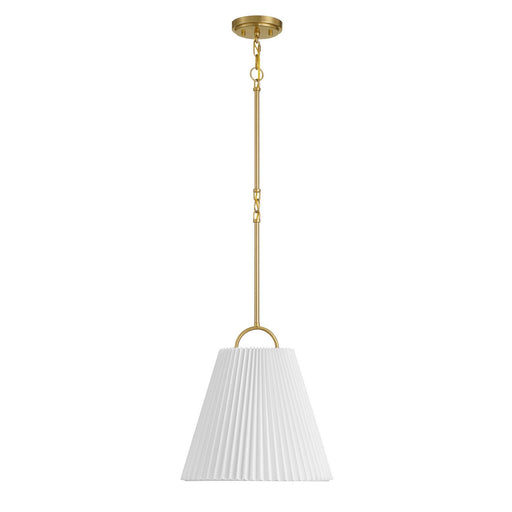 With a crisp white knife-pleat shade, subtle yet thoughtful detailing and a Natural Brass finish, this 1-light pendant beautifully brightens up any...