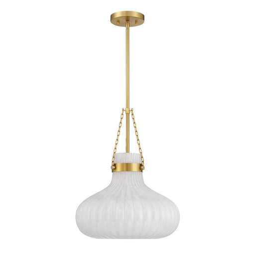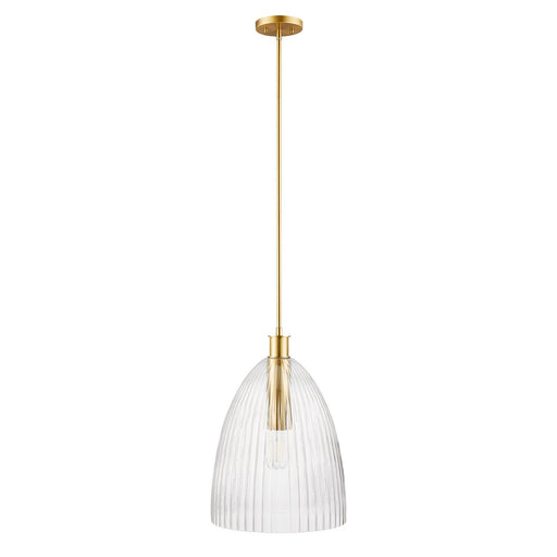Create beautiful illumination with this 1-light pendant! Its ribbed glass shade brings in a big dose of textural intrigue and its Natural Brass fin...