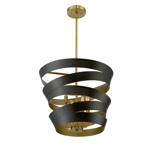 A swirling, twirling ribbon-like shade finished in matte black with gold inside creates a stunning look in this 4-light pendant. It is sure to be a...