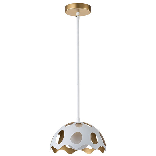Pebbles 10" Mini Pendant in White finish with Gold interior. The unique cut outs in the design are accentuated by a frosted glass globe that provid...