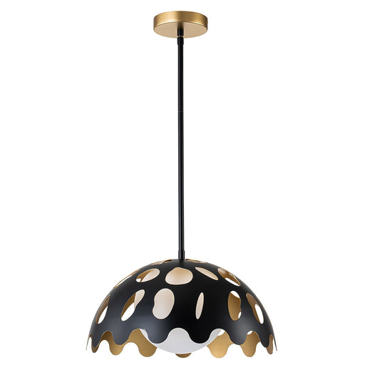 Pebbles 15" Pendant in Black finish with gold interior. The unique cut outs in the design are accentuated by a frosted glass globe that provides an...