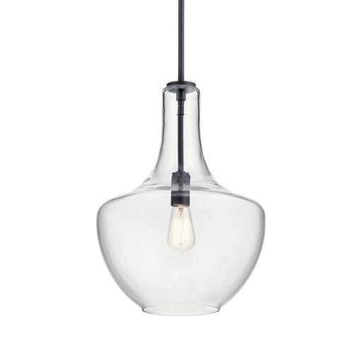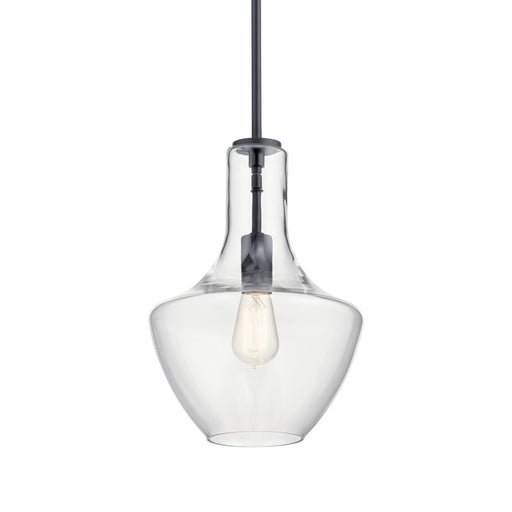 The Everly 15.25ââ¬ï¿½ one light bell shaped pendant comes with a curved, glass blown shade featuring clear glass and a Black finish for a simple...
