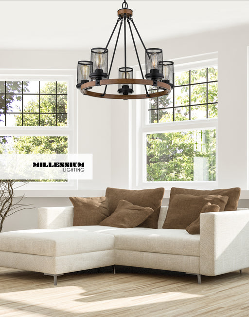 View full detailsMillennium 3525-MB/WG Five Light Chandelier, Matte Black/Wood Grain