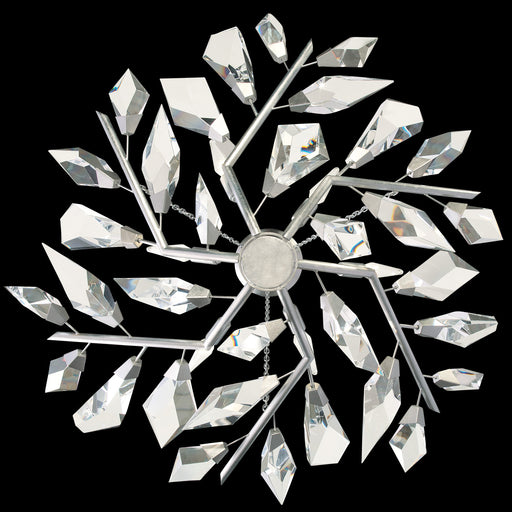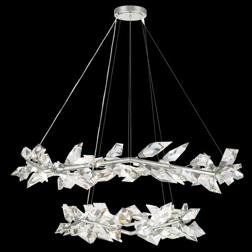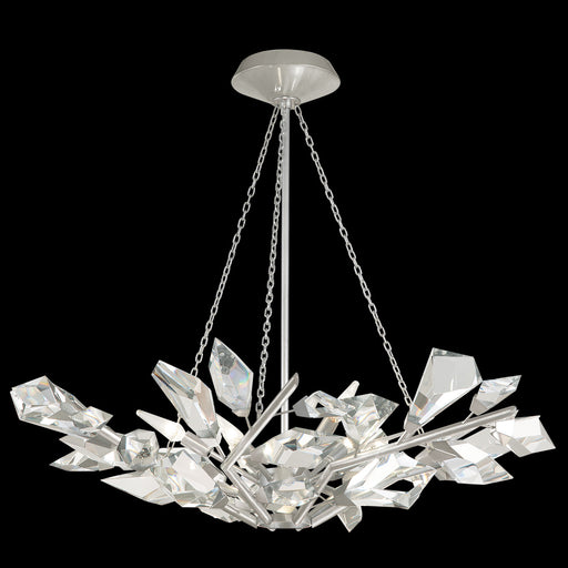 Silver leaf "down" LED pendant featuring strikingly carved and arrayed crystal planes. Contemporary in form and silhouette, these sculptures of met...