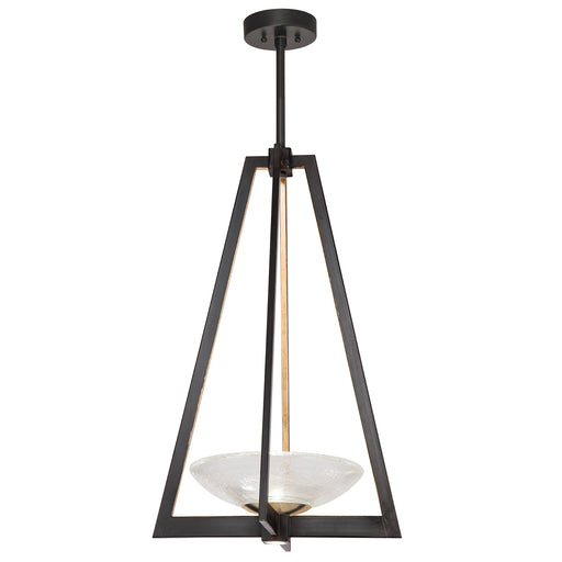 Gold leaf "up" LED pendant featuring strikingly carved and arrayed crystal planes. Contemporary in form and silhouette, these sculptures of metal a...