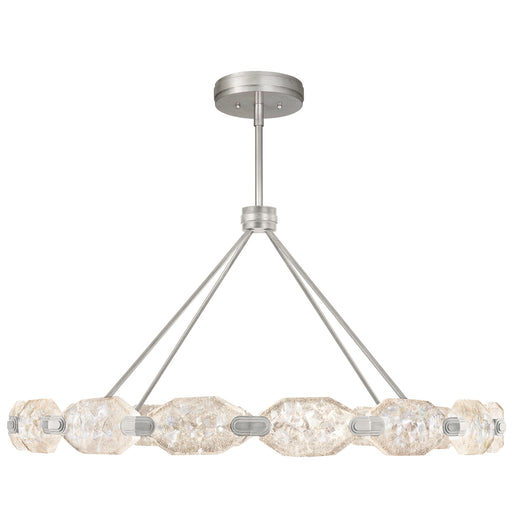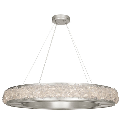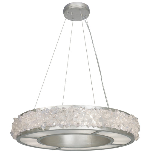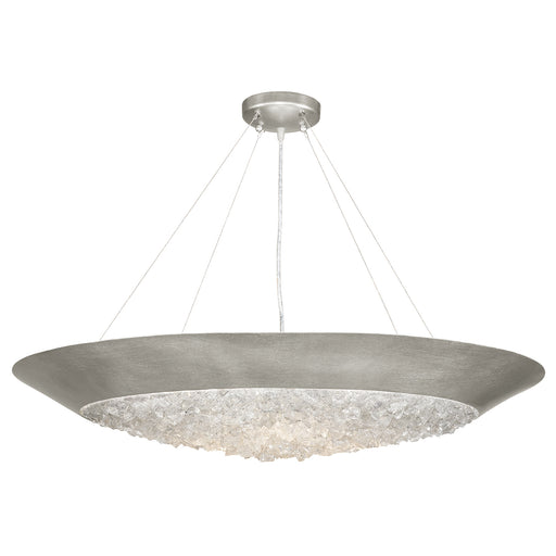 Pendant in a silver leaf finish featuring hundreds of rough cut crystal glass gems that refract light in a manner reminiscent to the cirrus clouds ...