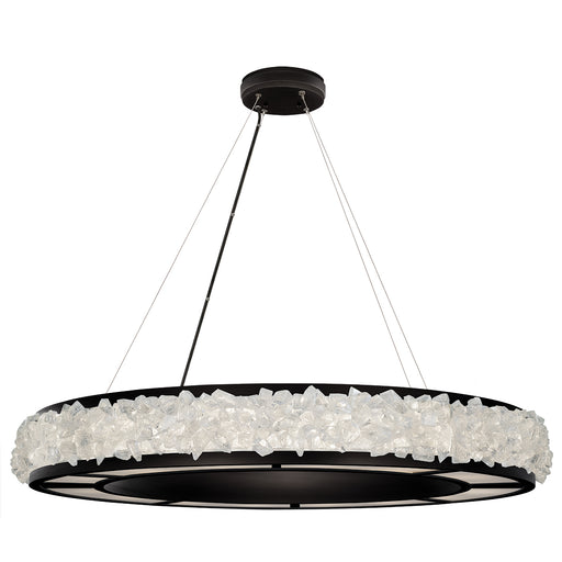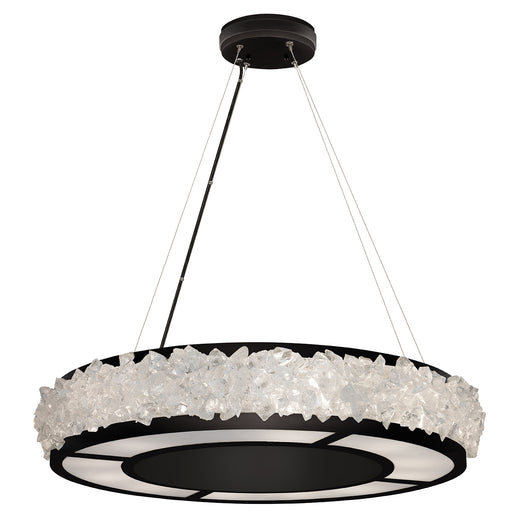 Pendant in a matte black finish featuring hundreds of rough cut crystal glass gems that refract light in a manner reminiscent to the cirrus clouds ...