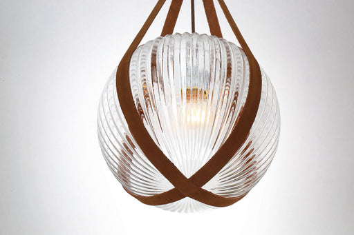 A pendulous glass orb supported by real leather straps offers the illusion of an effortless balancing act. Whether in clear ribbed glass, smoke col...