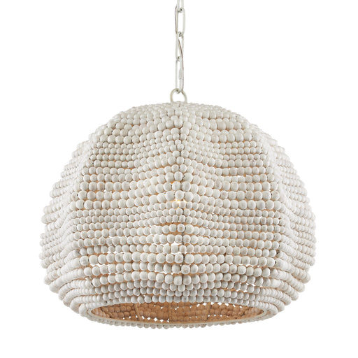 The Octavia White Pendant has a flowing profile made of wood beads that have been whitewashed and strung along metal wire so that the shape will re...