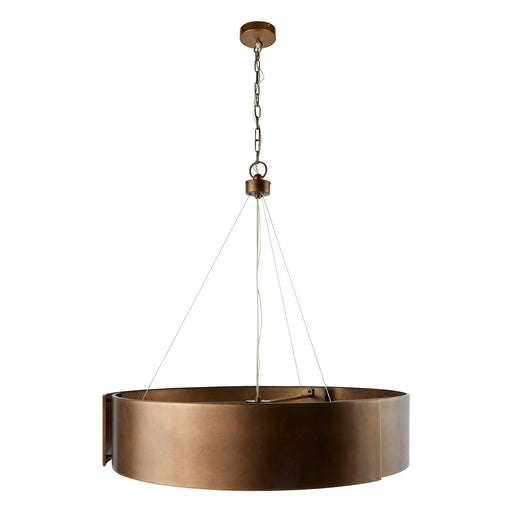 Adding intrigue to simplistic design is an effortless feat with this antique brass steel version of our Dante chandelier. From the suspended pendan...