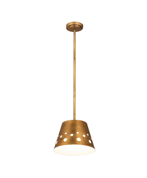 The festive design of the Katie one-light mini-pendant offers inspiring attitude to dress up a casual space. Crafted of warm rubbed brass finish ir...