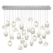 Master glass artisans blend quartz with other minerals to create Clear Quartz glass drop pendant with platinized silver leaf canopy. Also available in gold-toned silver leaf with choice of additional crystal glass options. For 220V, item is configured with halogen G4 bulb(s).