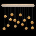 Inspired by one of the largest asteroids in our solar system that continuously orbits the outer reaches of space. Its rocky form has been punished over billions of years since the early formation of our planets. Our glass artisans have recreated this celestial form using a unique technique of freehand glassblowing that creates a ghostlike illumination through the amber colored glass. Each handblown, sculptural piece is a unique work of contemporary art hanging from a soft gold leaf canopy. Approximate blown glass drop dimensions: 5.5"W x 6.5"H.