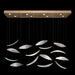 Elevate raises your environment to new heights. Each "plume" is handblown and sculpted with a translucent mixture of clear crystal and white glass. Illuminated from a soft gold leaf canopy and suspended by adjustable cables, this Made in America rectangular fixture features 15 handblown glass "plume"s and is ideal for low ceilings. Shown in a "horizontal" design.
